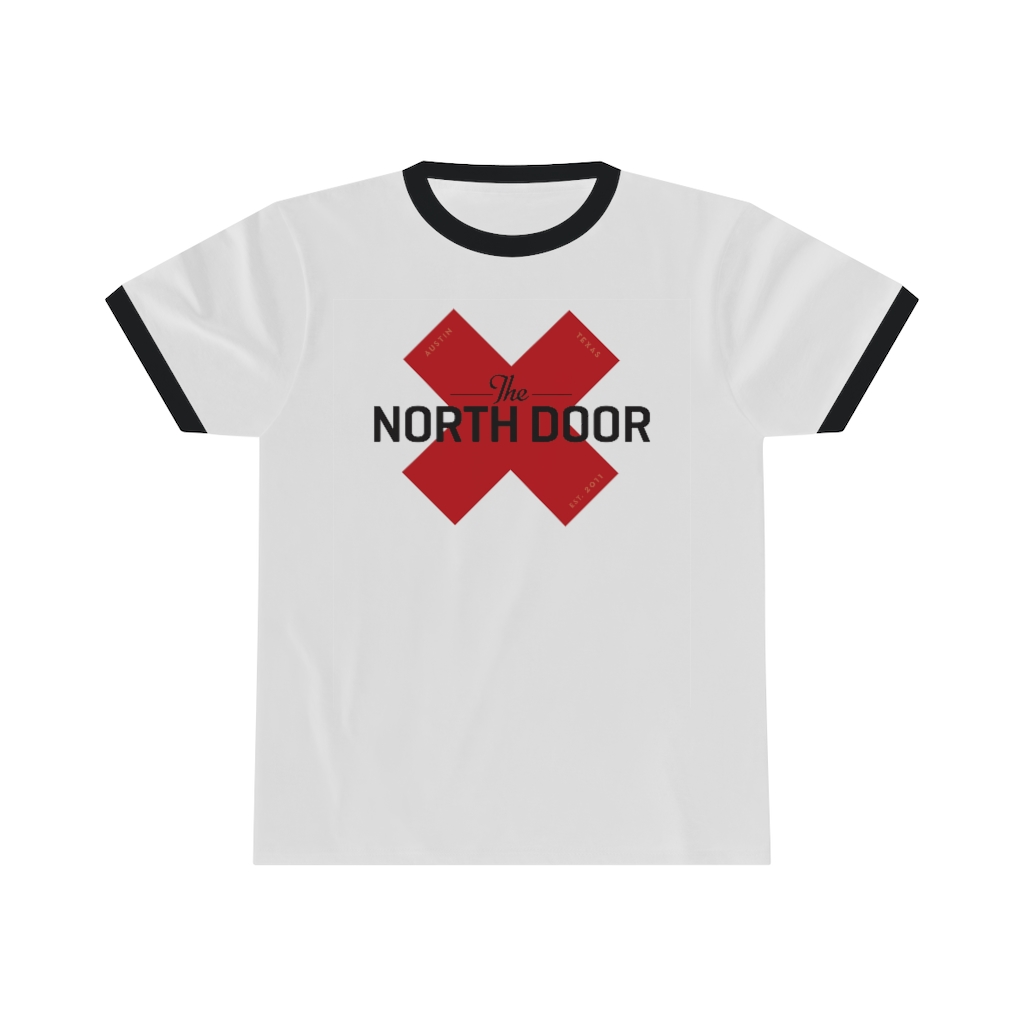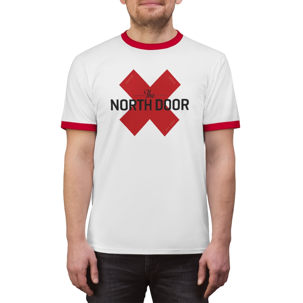 Austin’s The North Door live music venue ringer X logo tee. Revive the ‘classic-cool’ look in this Unisex Ringer. This light weight (5.4oz) T shirt is a summer-time must have purely for its versatility.